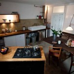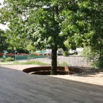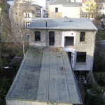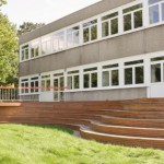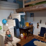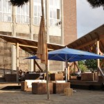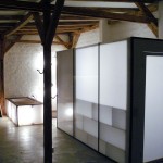 In einem Düsseldorfer Büroturm versteckt sich hinter dem kruden Bretterwerk eine Siebdruckwerkstatt. Die Atmosphäre im diesem Großraumbüro wurde durch den starken Kontrast von Farbe, Form und Material deutlich aufgelockert.
