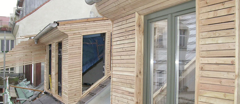 Fassade: verschiedenen Querschnitte und Formate, Fichte/Tanne und Siebdruckplatte