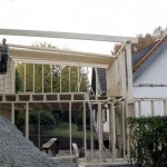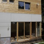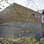 Nach Familienzuwachs wuchs auch der Bedarf an Wohnfläche in einem Einfamilienhaus in Düsseldorf-Erkrath. Dafür wurde im Garten ein 80 Quadratmeter großer Anbau aus Holzständerwerk mit Zellulosedämmung erstellt. Für ein organisches und modernes Aussehen sorgt eine Fassade aus Lärchenrombusschalung in Kombination mit Faserzementplatten.